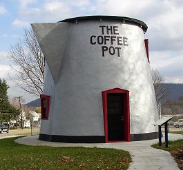 The girls were so excited about being at a hotel and sleeping in the same room with us that they were up until about 10:30. Judy’s (btw “Judy” was a middle-aged man in shorts; I have the sense that Judy lived in the motel’s early days in the 1950s, a couple generations of owners ago) had wireless so we sat on the little bench in front of our room and researched local food and tourism. Sarah discovered Bedford’s Coffee Pot House, which we visited the next morning after breakfast: