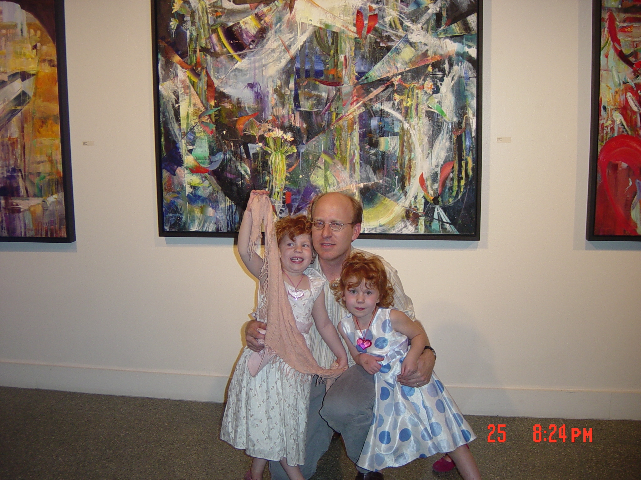 I think her paintings are fantastic — beautiful, strange, complex — and the show seems to be a big hit; she’s been receiving accolades from all sides, and she even sold the most expensive painting on Friday night — “Umwelt,” a.k.a. the bat painting, probably my favorite if I had to choose, so I feel a bit melancholy about its leaving our life so soon — to a complete stranger. The MFA has been long & hard in some respects but it’s now possible to look back and see all the stress, self-doubt, and very hard work as leading to this point and to painting that is (I think) richer and most original than the work she’d been doing previously. So I guess it was worth it.
